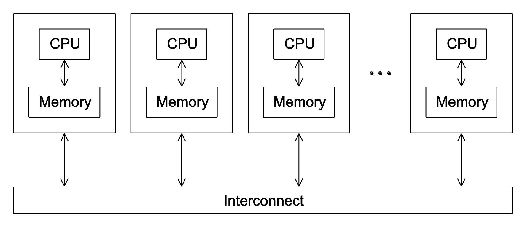 I sistemi a memoria distribuita sono composti da più processori, ognuno con la propria memoria “privata” inaccessibile dall’esterno. Dato che le CPU non condividono la memoria, la comunicazione avviene attraverso l’invio di messaggi, una rete di interconnessione.