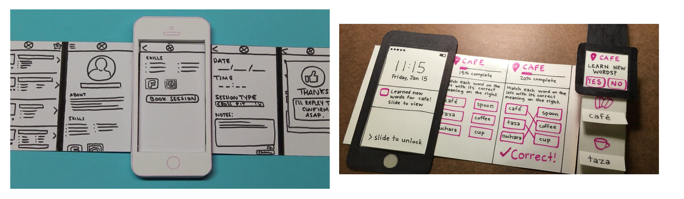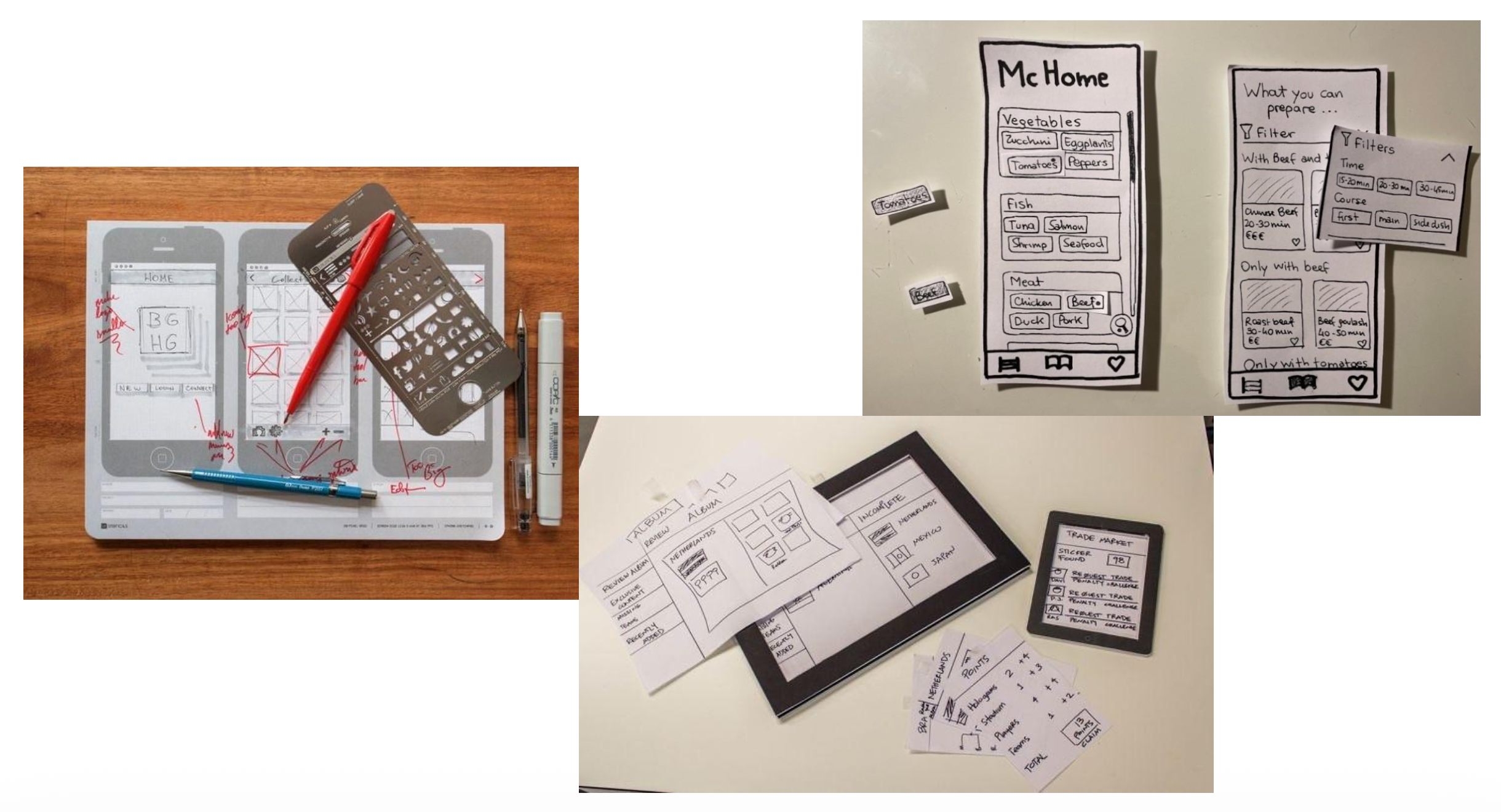 A hand-drawn mock-up of the user interface (usually) on multiple sheets of paper of varying sizes, useful because you can start using and test an application, months before implementing it.